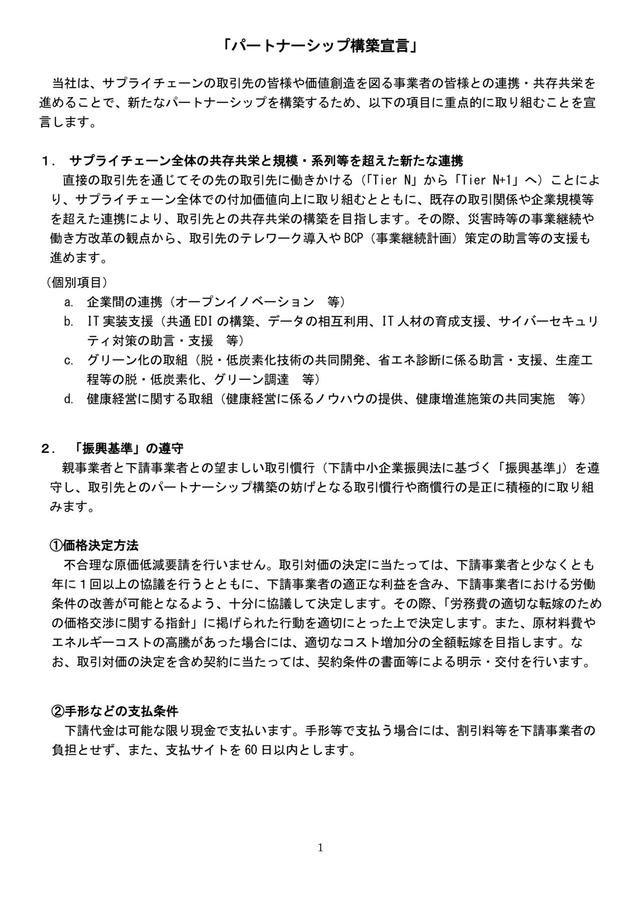 サプライチェーンの取引先等と連携・共存共栄を進めることで、新たなパートナーシップ構築する事を発注者側が宣言するものです。